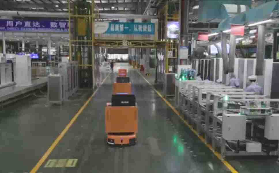 为车载冰箱物流配送打造的智能解决方案,,,,包含产中物流通过潜伏举升AMR搬运至线边,,,产后成品物流智能仓储,,流程包含产中物流智能齐套入库,,,,线边安灯叫料AMR智能配送至线边,,,成品入库、、、、出库,,,通过无人堆高车机器人,,智能仓储管理替代人工作业管理,,,,实现更高存储、、、、更高效率、、、更具柔性化的解决方案。。。。